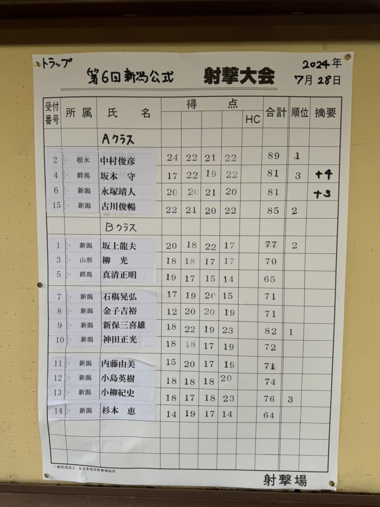 令和6年度第六次新潟公式試合結果R6.7.28(日)